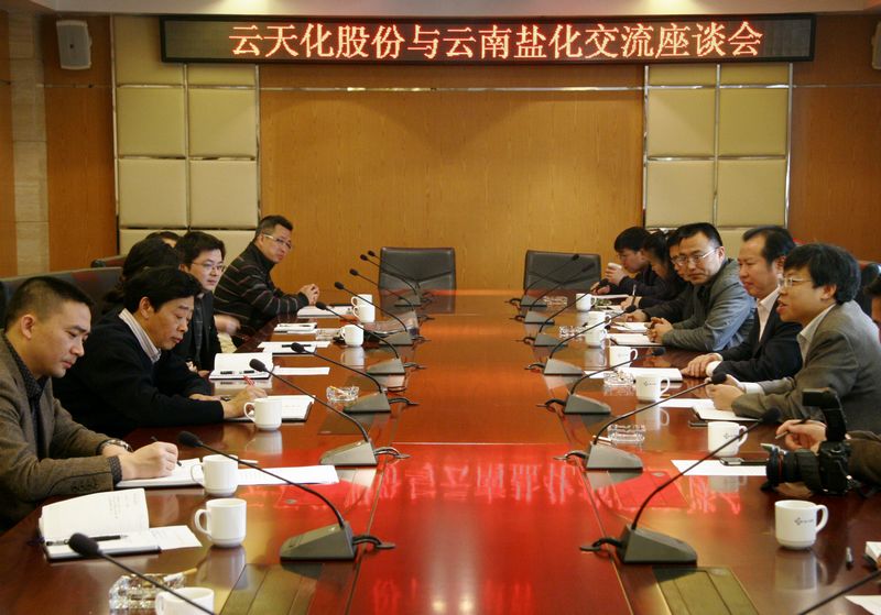 3月27日上午,云南盐化股份有限公司党委书记庾波、副总经理郭友金等一行10人到公司进行工作交流。公司党委书记刘富云及相关职能部门领导出席了座谈交流会。
