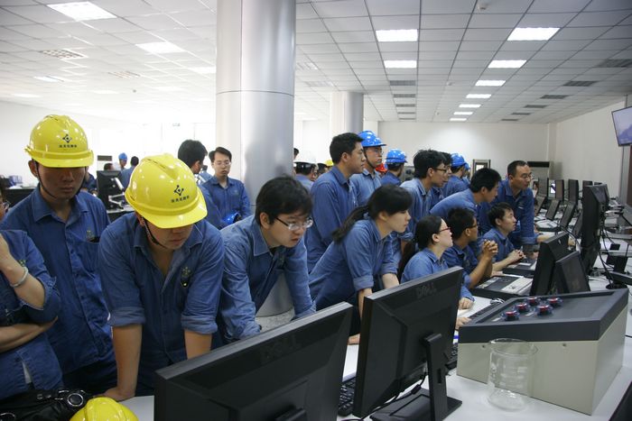 自开车程序启动以来,水富“煤代气”装置的中央控制室的氛围一直是忙碌而热烈的,为了确保开点火烧嘴的顺利进行,现场拉起了警戒线。操作台上的电脑警报声、键盘声不断,工艺人员目不转睛的盯着显示屏上的每一个工艺参数,查看每一个来连锁报警,根据相应的流程及整个系统要求及时调整。同时,电仪人员和壳牌中国的工程师们也在注视着整个控制系统后台数据的变化,配合工艺进行参数调整。