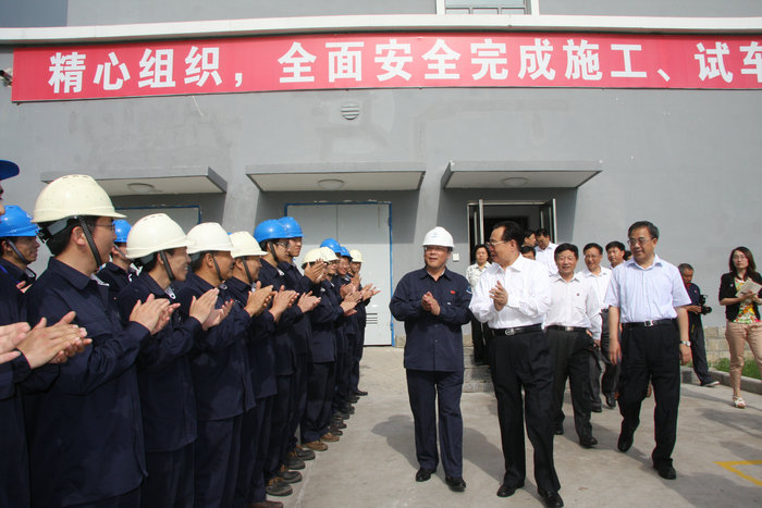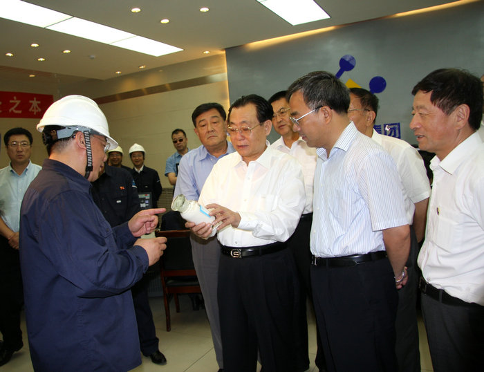 7月9日下午,在内蒙古自治区党委书记、人大常委会主任胡春华,全国政协经济委员会副主任张国宝,自治区政协主席任亚平,自治区党委常委、秘书长符太增,呼伦贝尔市市委书记罗志虎的陪同下,中央政治局委员、全国政协副主席王刚来到金新化工进行视察。