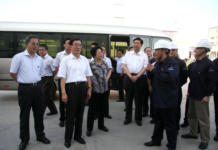 7月12日下午,中共中央政治局常委、中央纪律检查委员会书记贺国强来到金新化工视察,对金新化工项目建设和装置试生产情况进行了解,嘱咐金新化工要加大科技研发力度,在煤炭资源综合利用上发挥龙头带动作用,要求金新化工在化工试生产阶段一定要特别注意安全,勉励金新化工争取早日实现稳定运行达标达产。