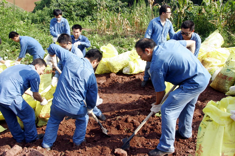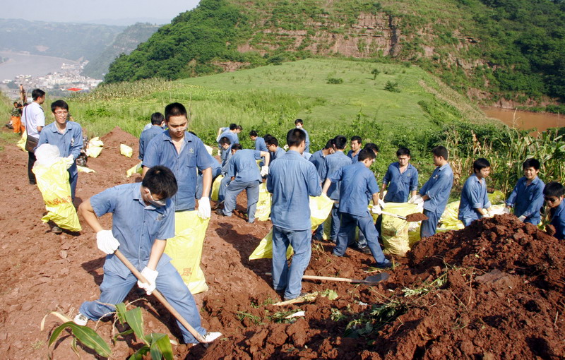 8月8日下午, 第一批40名抢险队员与来自水富县公安消防中队的11名官兵首先赶赴现场,共同开始了紧张有序的抢险工作。