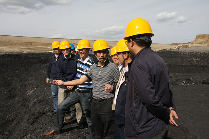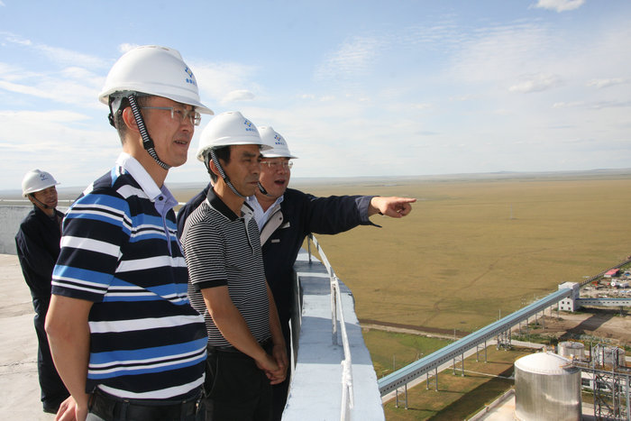他盛华一行首先前往东明矿业进行了煤矿生产情况调研。在露天矿坑口深处,他盛华实地了解了褐煤质量、生产规模和现场生产情况。随后,他盛华一行来到金新化工了解装置试开车和企业基本情况。在尿素造粒塔顶部,金新化工总经理陈大文向他盛华详细介绍了现场装置分布、工艺流程、试生产进度等具体情况,他盛华对金新化工试车取得的成绩给予了肯定。