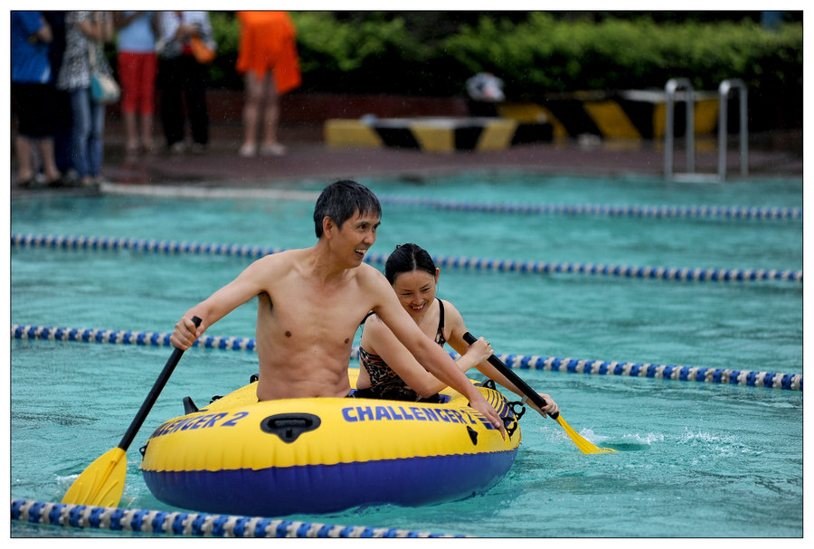 在竞技项目开展的同时,比赛还设置了水上投篮、25米障碍泳、赛龙舟及打捞总动员等妙趣横生的水上趣味项目,让更多员工参与其中,而这些项目的开展更让整个水上运动会迅速升温。岸上的人们被参赛者逗得哈哈大笑,水中的队员们却是沉浸其中、自得其乐。每一个人都尽情感受着运动带来的快乐。