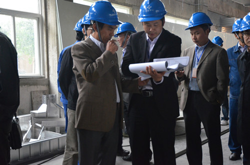 江林向他盛华董事长介绍FCCL中试线的厂房规划图