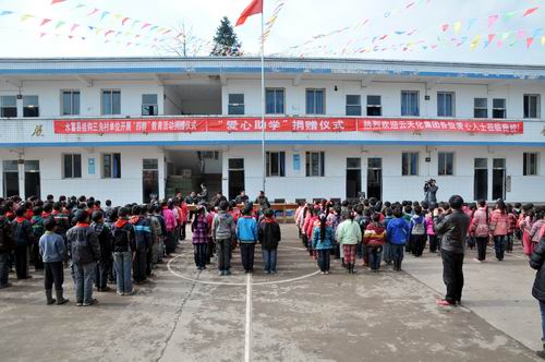 三角村是水富县最偏僻、最边远山村之一,也是县内唯一的苗族聚居村寨,境内层山环绕,沟壑纵横。当天上午11:00,帮扶捐赠仪式在三角村坪头希望小学举行,在浓浓的爱心驱使下,公司党委书记梁洪一行10人,不顾山高坡陡,驱车2个多小时赶到了现场。仪式上,梁洪代表公司对三角村2012年援建项目的圆满完成表示祝贺,对后续帮扶援助工作安排进行了说明。随后,并现场向坪头希望小学移交了捐助的200套桌椅,帮助改善教学条件。
