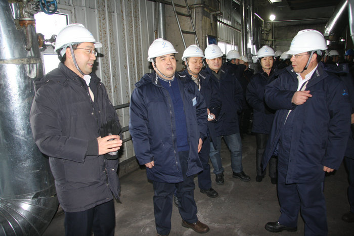 7日上午,在金新化工领导班子成员的陪同下,刘和兴一行冒着呼伦贝尔零下30℃多的严寒,前往金新化工装置现场,对各装置的生产运行情况进行了全面的了解。刘和兴首先来到了气化装置,金新化工副总经理李钢向刘和兴详细介绍了气化装置今年的试车情况、面临的主要困难及解决思路。