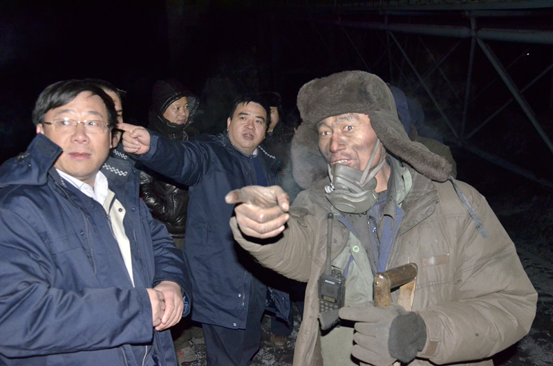 临近傍晚,刘和兴一行来到东明矿业露天矿矿区,看望了破碎站、检斤房等一线岗位员工,并与他们进行了亲切交流。在生产副矿长办公室、生产调度中心会议室,刘和兴分别听取了矿相关部门负责人就煤矿开采规划、工业广场建设、煤炭销售及2013年工作规划等多方面的汇报。刘和兴首先对东明矿业在2012年所做的工作及取得的成绩给予了充分肯定,并就软硬设备设施投资建设、绿色和谐矿山建设整体蓝图规划、铁路线及输煤栈桥建设等多方面工作提出了指导性意见及要求。