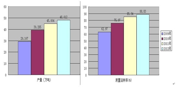 天安化工经过自2008年6月18日打通工艺流程出氨后4年多的锤炼,坚持本质安全建设,持续消化吸收煤气化技术,不断优化合成氨生产装置技术水平,装置年产量和运转率逐年大幅提高,使以煤代气生产合成氨装置从低负荷稳定运行阶段很快提升转入达标达产阶段。