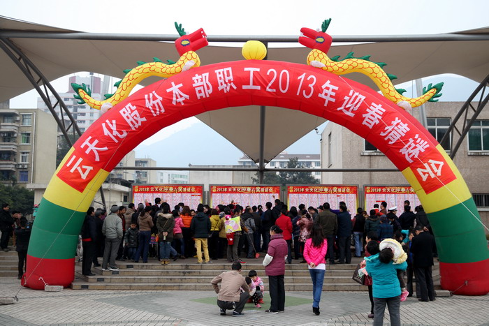 2月11日,新年的大年初二下午三点,小区广场上早早就挤满了人,公司本部职工2013年迎春猜谜会在这里热闹举行。人们纷纷围拢在四块鲜艳的展板前,相互商议着展板上532道各色灯谜的谜底,当主持人宣布猜谜活动正式开始后,大家争先恐后举手作答,而答对者自然是欢呼雀跃,在得到小小自我满足的同时,还能凭借到手的谜题字条兑换到一件非常实用的新年礼物。