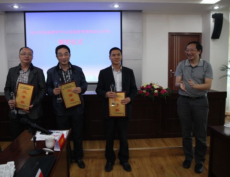 股份电仪副总工程师雷坚为获得“2012年装备维护中心设备管理绩效综合评价奖”三等奖获得者纽米科技、天勤材料、天腾化工颁奖