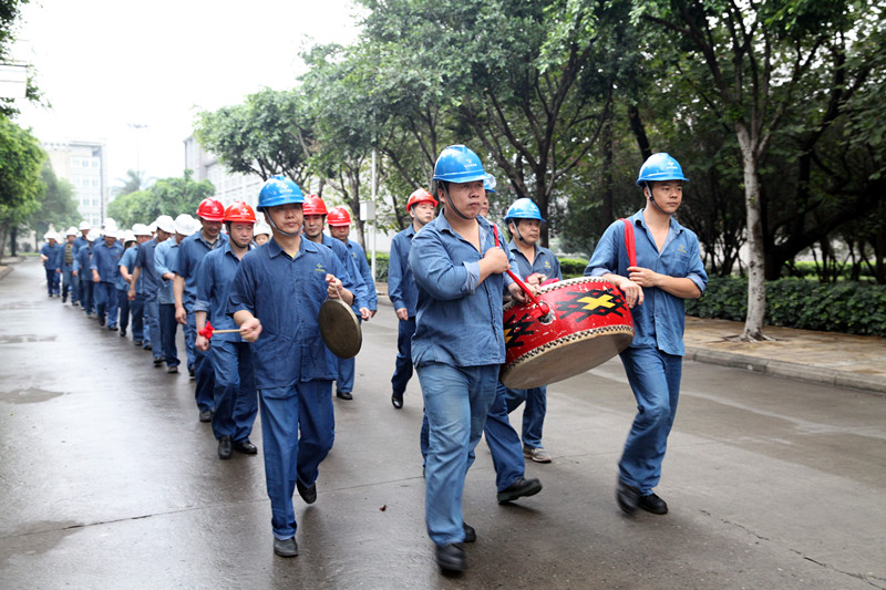 上午9:30分,伴随着喜庆的鼓点,公司领导梁洪、陈林、曾家其,各专业副总工程师、职能部门、生产、辅助车间负责人,喜气洋洋地从公司大门出发,前往尿素车间祝捷。