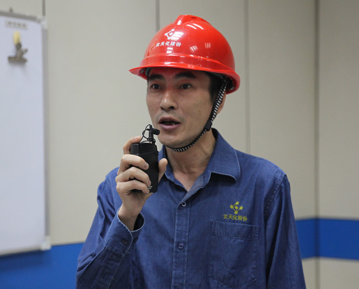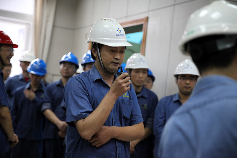 公司常务副总经理、总工程师陈林为尿素车间颁发奖金