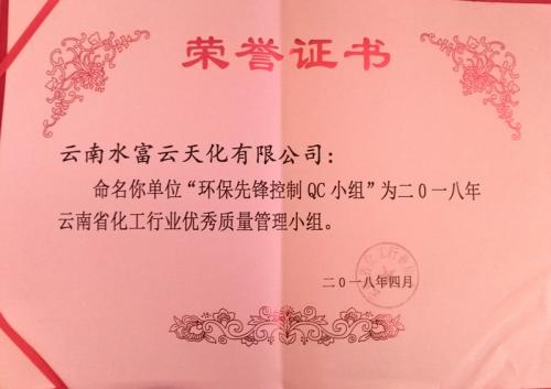4月12日,在文山州丘北县举行的云南省化工行业质量协会QC发布会上,公司分别发布了《降低焚烧废液引起二氧化硫超高次数》、《降低澄清池出水浊度》两项QC成果,其中《降低焚烧废液引起二氧化硫超高次数》被选入2018年云南省质量协会QC成果发布会,两个QC小组均被命名为云南省化工行业优秀质量小组称号。 ...
