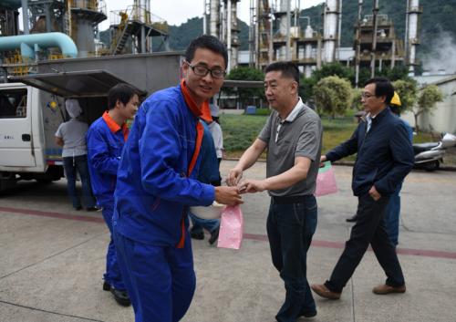 丹桂飘香又中秋,花好月圆人长久。10月4日中秋佳节到来之际,公司党委书记梁洪,电仪副总工程师、设备总监雷坚率领慰问组,深入生产现场及各值班网点,为坚守岗位的广大干部员工送上节日的慰问与祝福。 当天下午5时,慰问组人员从云天宾馆出发,分别前往化肥、制醇、水汽车间生产现场以及经营部、维保中心、生...