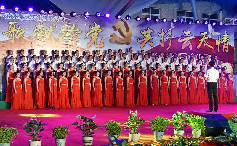 颂歌献给党,共抒云天情,7月1日晚上,云天化小区广场内激情飞扬,红歌嘹亮,公司纪念建党95周年暨长征胜利80周年歌咏比赛正进行得如火如荼,参赛代表队激情放歌,唱响天籁,用自己的满腔热情,表达对党的美好祝福。 公司近1千名干部员工参加了此次比赛。舞台上,11支代表队以饱满的热情,嘹亮的歌声歌颂伟大的党...