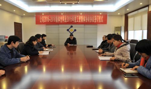2015年12月9日下午三点,公司“三项集体合同”签订仪式在行政楼二会议室举行。企业方首席代表公司总经理陈林和职工方首席代表公司工会主席宋玉,分别在《云南水富云天化有限公司集体合同(2016年-2018年)》、《云南水富云天化有限公司女职工特殊权益保护专项集体合同(2016年-2018年)》、《云南...