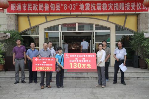 公司紧急筹备向云南鲁甸“8·03”地震灾区捐赠物资善款130万元
