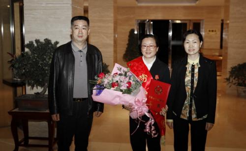 鲜花、掌声献给劳动群众中的佼佼者,4月29日晚,荣获“云南省第二十一届劳动模范”称号的电仪车间职工赵宁载誉归来,受到了公司领导梁洪、宋玉,以及工会、电仪车间干部员工的热烈欢迎。 当晚10点,当身披绶带、胸佩奖章刚从昆明领奖归来的省劳模赵宁回到公司时,公司领导梁洪、宋玉与赵宁亲切握手表示祝贺,称赞...