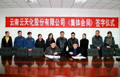 12月4日,云天化股份公司在工会三楼会议室举行《集体合同(2013年-2015年)》签字仪式。公司资方首席代表总经理刘和兴与劳方首席代表公司党委书记、工会主席、纪委书记梁洪分别代表行政方和职工方在集体合同书上庄重签字,这标志着公司集体合同协商、签订取得了圆满成功。 签字仪式由公司党委委员、党委工作...