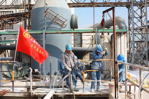 团结协作 勇挑重担 天腾化工青年突击队轮番清理洗涤池