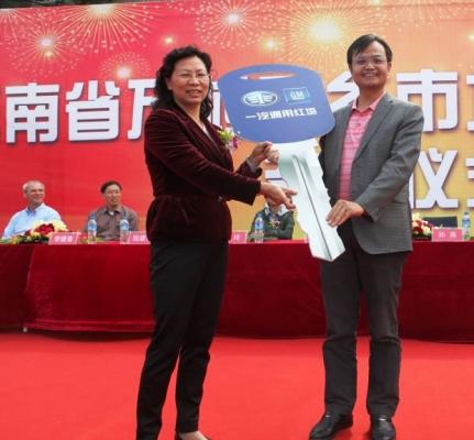 10月16日,云南省“万村千乡市场工程”配送车交车仪式在曲靖一汽通用红塔云南汽车制造有限公司举行。天驰物流作为唯一的企业代表,从云南省商务厅副厅长孙燕、省财政厅巡视员胡岑菩手里接过象征启动配送车辆的“车钥匙”。拥有“车钥匙”后的天驰物流,将在“万村千乡市场工程”配送中增添更多的动力。 云南省自2...