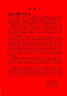 10月19日,公司接到彝良县县委、县政府发来的关于彝良地震捐款的感谢信,感谢信内容如下: