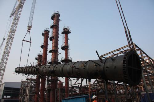 61米单件最长设备成功“着陆” 水富煤代气技改工程大件吊装圆满完成