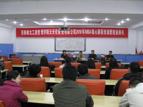 11月26日上午,公司与西南财经大学工商管理学院联办的2010年度MBA核心课程培训班结业典礼,在西南财经大学工商管理学院光华楼如期举行。公司党委副书记、纪委书记、工会主席梁洪、党委工作部副部长付伟、西南财经大学工商管理学院副院长杨石磊等领导出席结业典礼,典礼由西南财经大学工商管理学院培训中心副主任...