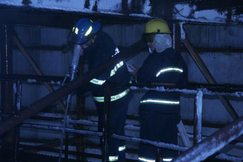 消防队员艰苦作业 清洗尿素造粒塔内壁