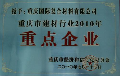 CPIC荣获“重庆市建材行业2010年重点企业”称号