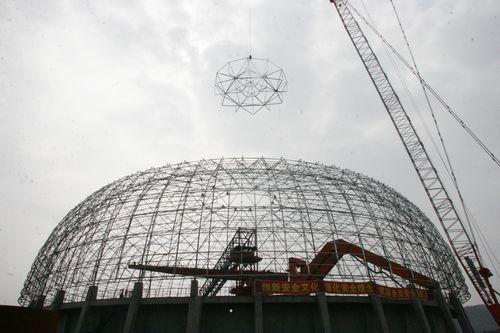 8月4上午10点,随着2号煤库网架顶部通风系统与主结构对接完成,煤代气技改工程2号煤库钢网架主体顺利封顶。 公司水富“煤代气”技改工程煤库项目由江苏天地钢结构集团公司设计、制造和施工,设计数量为两个,各单体网架支座直径84.8米,网壳厚度1.8米,主体杆件6693根,球体数量1709个,均采...