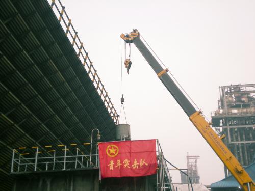 公司团委组织青年突击队回装合成旁虑池石英砂(组图)