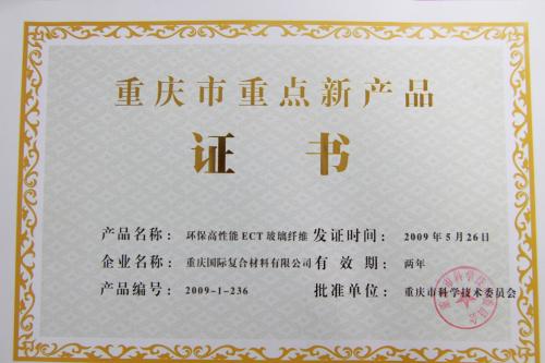 近日,重庆市科学技术委员会公布了2009年重庆市第二批重点新产品计划项目名单,全市共有104家企业的204项新产品获此殊荣。CPIC申报的“耐汽车冷冻液的尼龙用短切纤维ECS301HP”和“环保高性能ECT玻璃纤维”两项新产品榜上有名。这是继CPIC今年荣获“国家高新技术企业” 之后在科技创新方面获...
