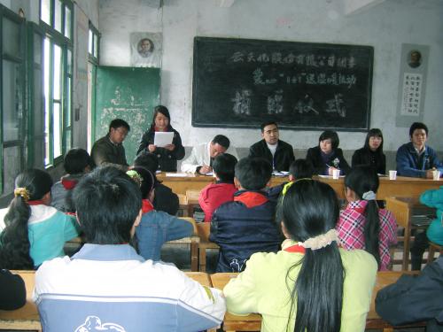 公司团委三角村小学送温暖 苗族学童少先队礼表谢意