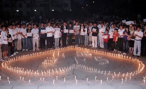 公司青年员工组织聚会为震灾同胞祈愿