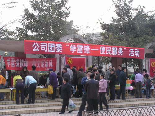 沐浴着三月和煦的春风,4日上午,由公司团委组织的“学雷锋――便民服务”活动在生活区文化广场举行。鲜红的团旗迎风招展,绚丽的标语昭示着“奉献、友爱、互助、进步”的志愿者精神,文化广场一片春意溶溶、热闹非凡的景象,形成了公司开展群众性精神文明建设的一道亮丽的风景线。本次活动共有来自20个基层单位的近20...