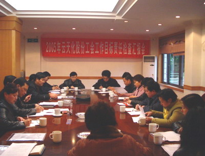 1月11日上午,云天化股份公司2005年工会工作目标责任检查汇报会在宾馆二会议室召开,公司工会负责人向前来检查的集团公司党委副书记、工会主席李维育一行,详细汇报了2005年公司工会工作的开展情况和目标责任完成情况。会议由公司工会副主席李林主持,工会工作人员和部分基层工会主席参加了会议。李林代表公司工...
