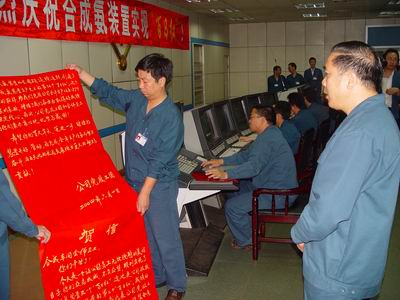 今年以来,合成氨装置一直处于满负荷运行状态,加之天然气的供应充足,因此在三、四、五月份曾连续刷新单月产量的最高纪录。到6月1日,合成氨装置连续运行整整100天,率先实现了今年的首个“百日红”。在这灿烂的六月,我们终于换来了丰厚的回报。上午9:00,欢快清脆的锣鼓声由远而近向合成车间迎来,这是两千名公...