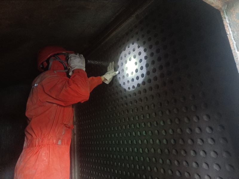 检查过程中,技术组重点查看了电除尘阳极板、阴极线的完好情况,及时排除放电异常问题;同时查看尾部竖井的腐蚀与磨损状况,提前预防传热效率降低与设备泄漏风险,为2#炉后续安全稳定运行奠定基础。