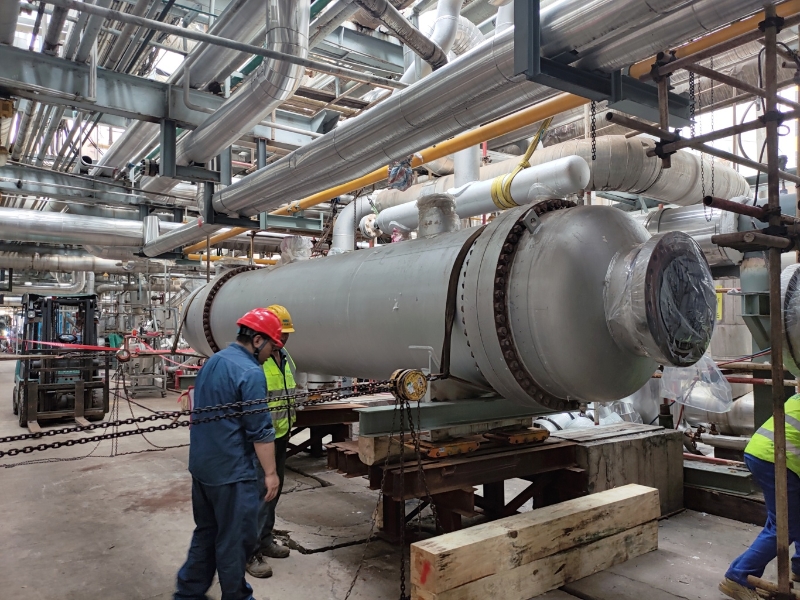 8月30日,合成氨装置103C旧设备完成拆除,并已移至通道内,即将开展新设备更换工作。