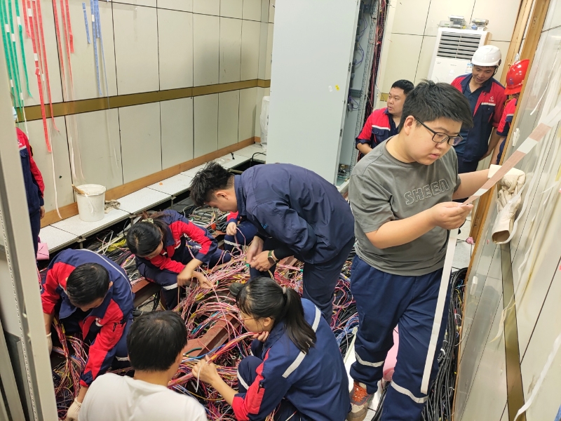 大型化工装置的控制机柜,其复杂程度、接线数量都远超常人想象,为保障项目进度,装备运维中心智控班组全员上阵,十余人挤在一个几平米的狭小空间内,每天超15小时的下蹲工作时间,仅用4天时间完成拆柜、拆线工作。为确保后续接线的准确性,班组对每根接线张贴唯一编号标识,并进行分组整理。这也为后续接线和装置运行期间的检维修工作减轻了负担。