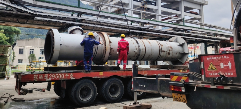 8月30日下午,化肥装置大修关键设备废锅101CB,在装备技术公司与装备运维部门的协同配合下,顺利完成拆卸与转运工作,为后续设备更换投用做好前期准备。