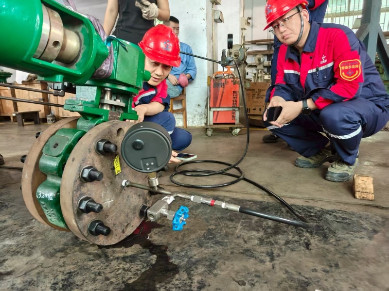 8月31日,经过前期拆解、吊装和执行机构检查,调节阀故障排除进入到最后的试漏步骤。