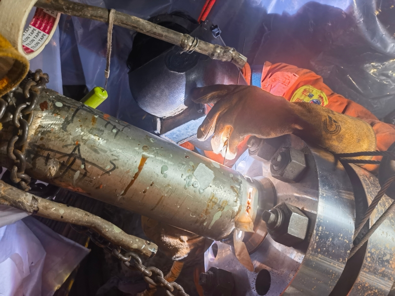 该接管介质甲胺溶液、温度183℃、压力16.1MPa。焊接时对焊工技术要求高,温度控制,焊缝热输入等都要严格控制,稍有不慎,就会造成管道腐蚀加快影响管道使用周期,本次施工质量也直接影响203C后期整个打开检查的进度。装备运维焊工班针对此项工作高度重视,为确保焊接工作一次检验合格,提前做好工机具的准备,安排技术精湛的焊接施工人员,熟悉从切割、打磨、清理、组对、打底焊接、测铁素体等施工方案。