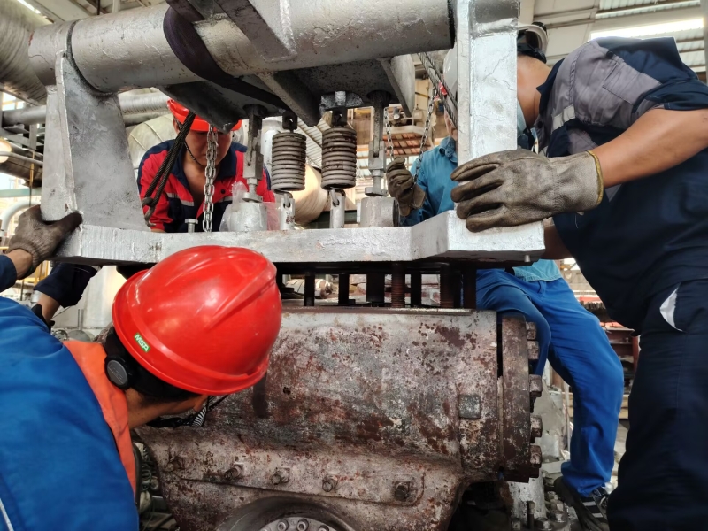 此次大修以“彻底排查隐患、保障设备长周期运行”为目标,目前已完成多项核心任务:汽轮机转子平稳吊入设备本体并已扣盖,为后续部件安装提供条件;提板阀成功安装,连接管道已更换新的垫片;同时,各部件密封面卫生已打扫完毕待后续部件安装。