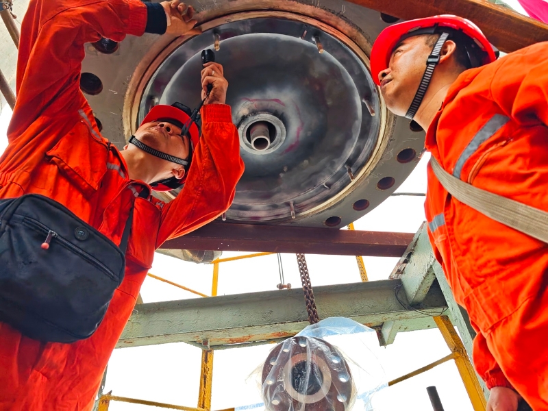初步检查结果显示,塔体主体结构完好。此次检查的顺利完成,为准确评估设备状况、制定科学检修方案提供了重要依据,对保障装置下一个长周期安全、高效、经济运行具有重要意义。目前,相关检测数据正在进一步分析处理中。