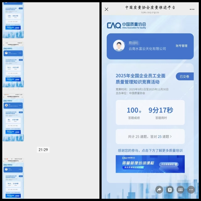 为响应公司质量月活动要求,强化装置员工质量意识、提升质量管理水平,近日,甲醇装置积极组织全员参与中国质量协会举办的网上质量知识竞赛,以“以赛促学、以学强能”的方式,为质量月活动注入实效动能。