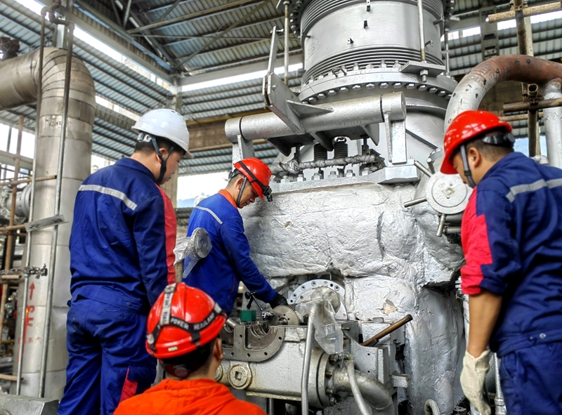9月5日,在装备运维中心加班加点的工作下,化肥装置105-J机组大修进入尾声。