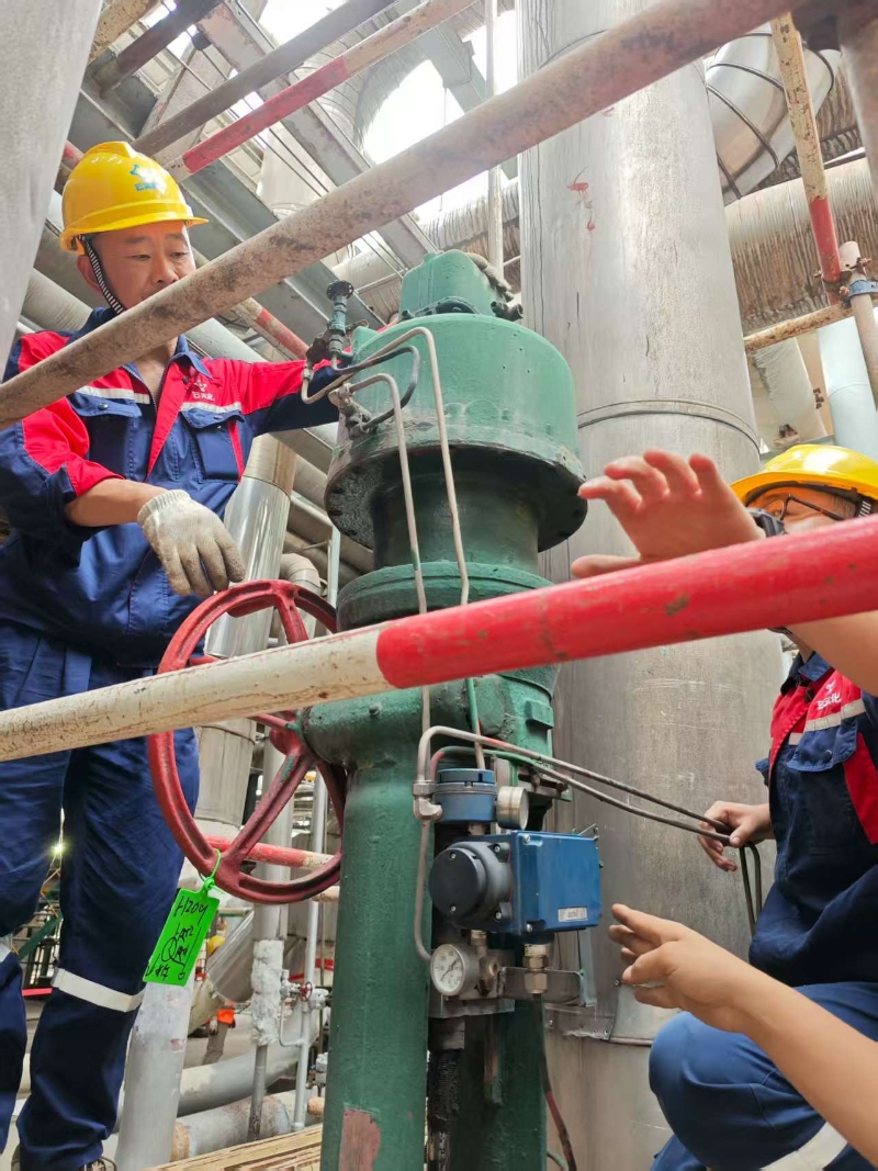 近日,装备运维中心电仪维护一班仪表大修组对公用工程、合成、尿素等调节阀展开调试工作。调校内容包含检查调节阀气源是否漏气、电磁阀工作是否正常、调节阀零点和线性是否良好等,并做好调校记录台账。