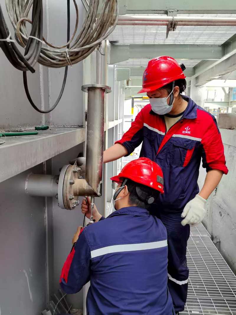 在具备检修条件时,为避免交叉作业,装备运维分析仪表班第一时间组织人员对AI301氧化锆的断电降温处理,用电票证动火票证办理、旧仪表拆除、新支架焊接固定、氧化锆分析仪安装、送电升温一气呵成。小组人员每人都分工不同,但各司其职、节奏契合,毫无阻滞的完成了氧化锆分析仪的更新。